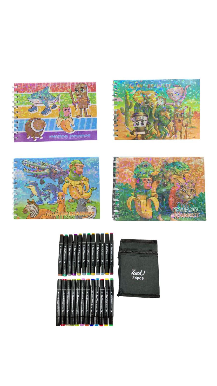 Este kit é perfeito para quem busca criatividade, relaxamento e qualidade em um só produto. O caderno de colorir Bobbie Goods conta com 48 páginas de ilustrações no estilo Italian Brainrot, com traços modernos, divertidos e super detalhados.
